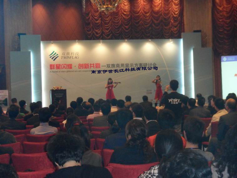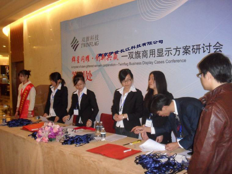 2010年10月26日,群星闪耀、创新共赢——双旗商用显示方案研讨会在上海斯格威铂尔曼大酒店1楼隆重召开,双旗重要合作伙伴夏普、三菱、UTC和唯瑞参与展会,并展示了其优势产品,更有各品牌代表就产品特点优势以及与双旗共创双赢发表演讲。