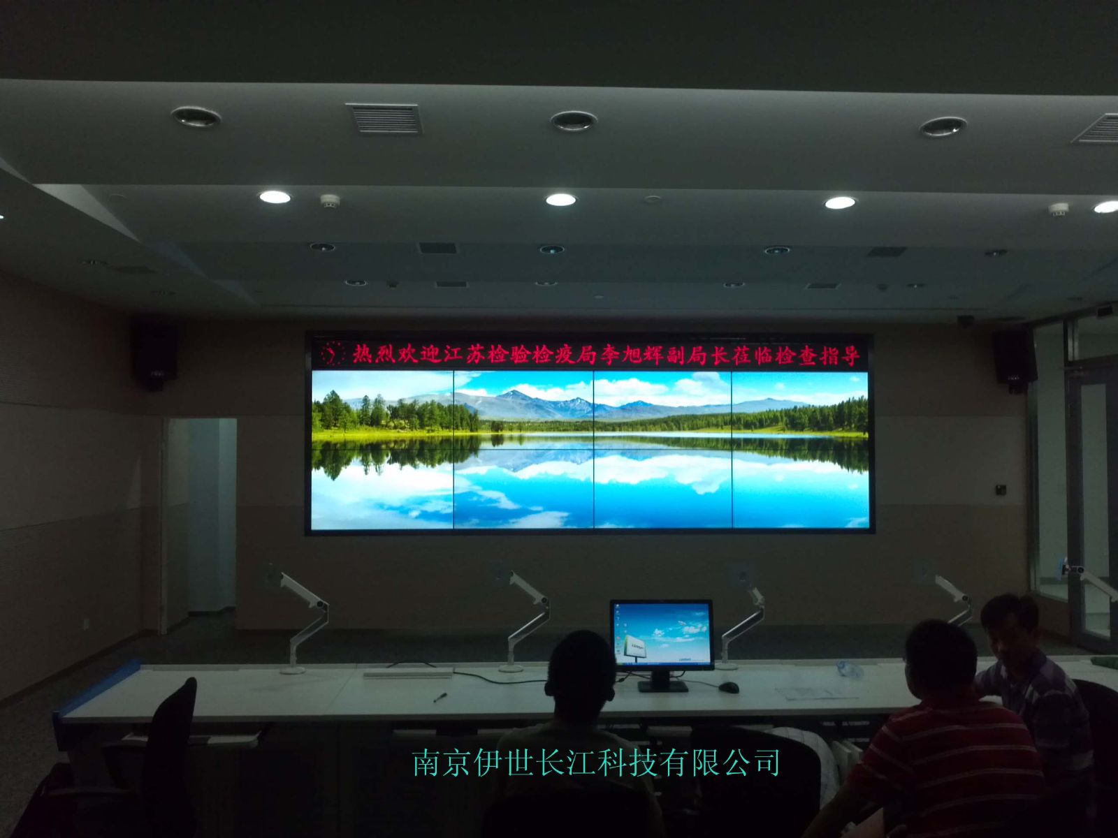 此次工程为南京海关电子口岸安装液晶拼接电视墙,用于保证海关电子口岸安全和运营进行智能化调度指挥。经过夏普工程师对指挥中心需求的认真分析和对安装环境的实地考察,最终选用了8台夏普(SHARP)的60寸专业液晶拼接显示器PN-V601,组成一组2×4大屏幕液晶拼接电视墙。该显示器采用超薄边框,是专业视屏电视墙的理想选择。边框宽度的降低使得屏幕之间近乎无缝,相邻两台显示器之间的宽度仅为6.5毫米(底边和右边为2.4毫米、顶边和左边为4.1毫米。相邻显示器之间的非画面区域为7.1毫米。PN-V601适用多种信号和组合,配置灵活,屏幕拼接近乎无缝,成为当今视屏电视墙的全新展示标准。